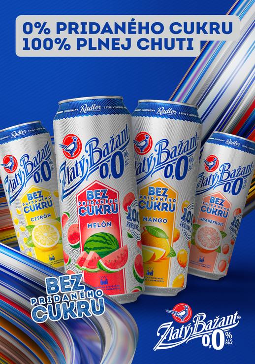Novinky Zlatý Bažant Radler 0.0% Mango a Melón bez pridaného cukru