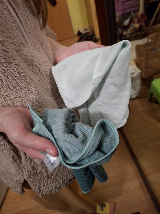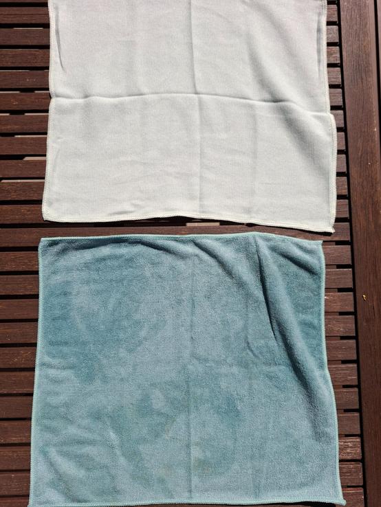 Utierky sú dostatočne veľké. Oceňujem to, že výrobca dal do balenia hneď dva kusy na dva rôzne účely. Je to malý, ale zároveň veľký detail. Tmavá, na dotyk mäkšia utierka slúži na čistenie okien. Je dostatočbe savá a čistenie je s ňou rýchle a bez námahy. Svetlá zas slúži na suché čistenie bez šmúh.
