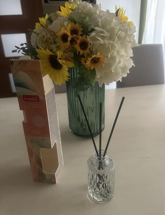 Hneď plná očakávania som ju otvorila a ovoňala. Za mňa veľmi príjemná vôňa. Tyčiniek je dostatočné množstvo, rýchlo nasiakli a začali voňať. No trvalo to len jeden dva dni čo som pri príchode domov zacítila aj vôňu Mám ju umiestnenú v chodbe, čo je pomerne malý priestor a teda očakávala by som ďaleko výraznejšiu intenzitu.Teraz sem tam zaregistrujem vôňu , hlavne ak vznikne väčší pohyb vzduchu, prievan. Dobra vec sa dobrým úmyslom ale už nekúpim.