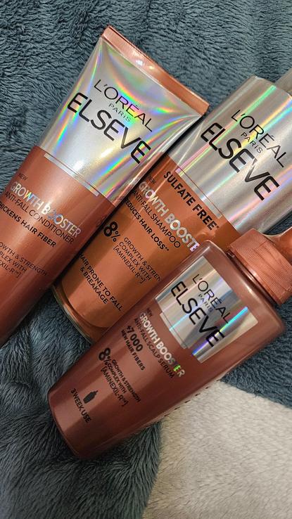 Šampón proti vypadávaniu vlasov Elseve Growth Booster je obohatený o 1,8 % aktívny komplex s [NIAMINEXILOM]™, ktorý posilňuje vlasové vlákna, predlžuje ich životný cyklus a pomáha znižovať vypadávanie. Pri pravidelnom používaní prináša viditeľný efekt – vlasy pôsobia hustejšie a sú až 10× odolnejšie voči lámavosti¹.