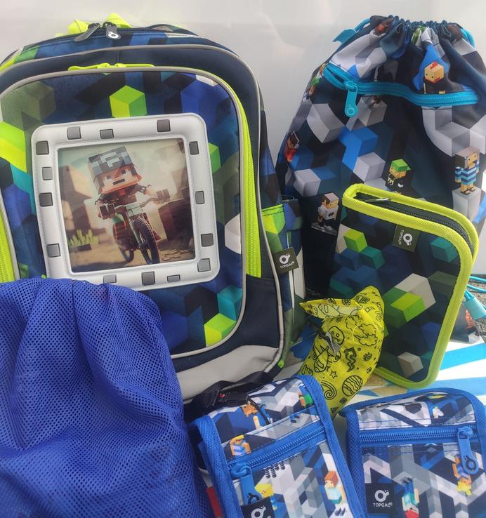 Školská taška Topgal PixelArt World ENDY 24015 je ultraľahká dvojkomorová školská taška s hmotnosťou menej ako 1 kg, určená pre chlapcov od výšky 110 cm (1.–3. trieda ZŠ). Ponúka ergonomicky tvarovanú chrbtovú časť a nastaviteľné ramenné popruhy pre zdravé nosenie, doplnené o reflexné prvky na čele a bokoch pre väčšiu bezpečnosť. Zaujme hravým PixelArt dizajnom s možnosťou meniť 4 priložené obrázky so zvieracími a športovými motívmi v štýle Minecraft.