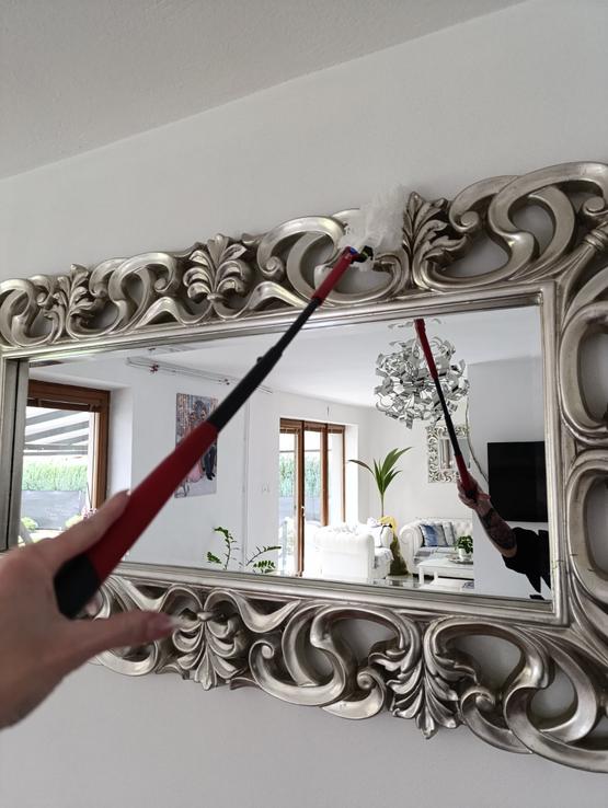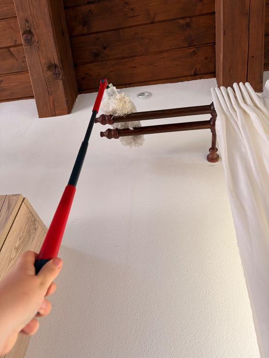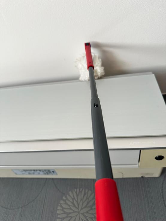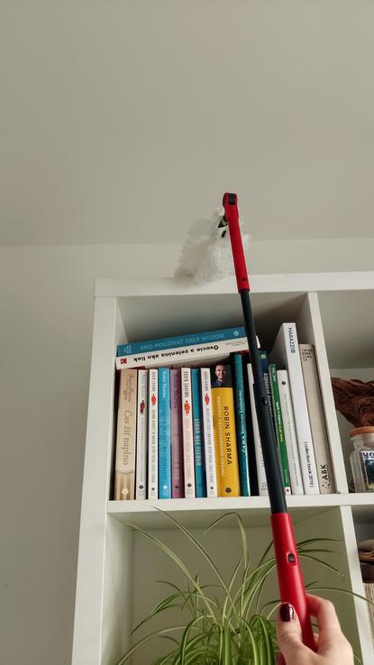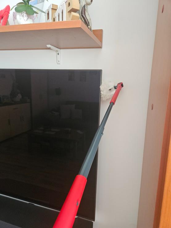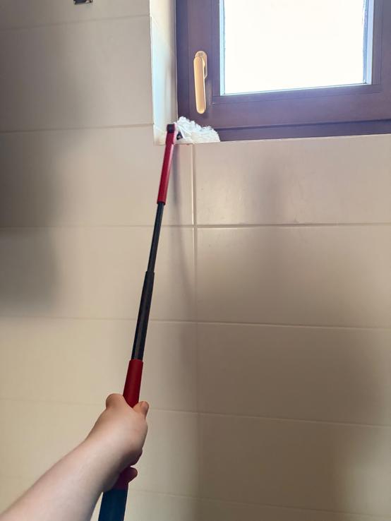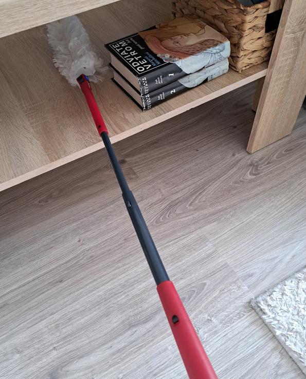 Teleskopická tyč je samozrejme velké plus aj ked ja by som uvítala kludne ešte dlhšiu(som malá 🫢) Aby sme teda naozaj dočiahli práve na tie inkriminované ťažko dostupné miesta v domácnosti.😉