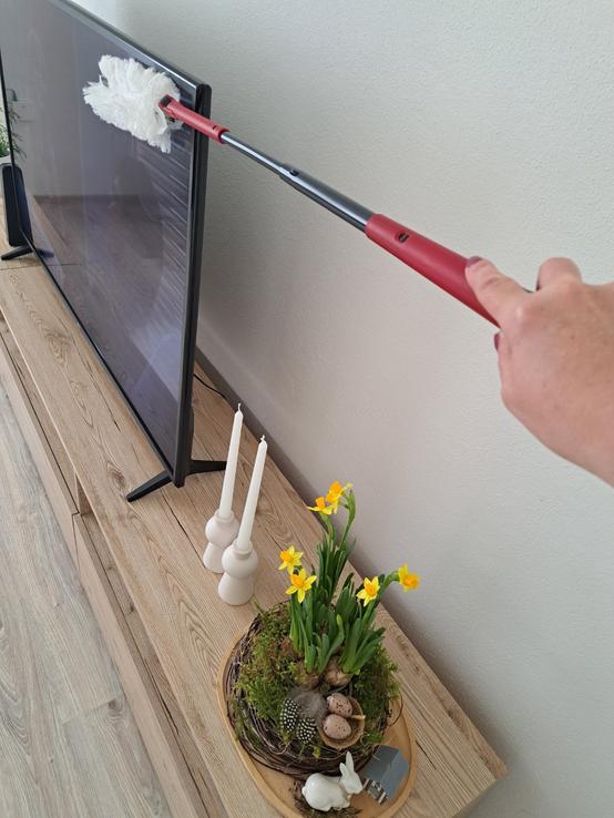 - Tvarujete si veľkosť aj sklon prachovky podľa potreby. Teleskopická tyč. Dosiahne všade kam potrebujete bez použitia schodíkov, alebo stoličky. Je veľká - jedným ťahom utriete väčšie plochy.