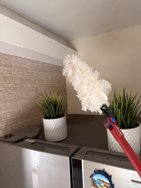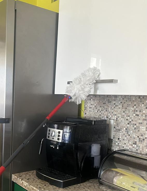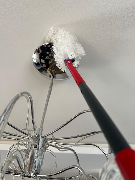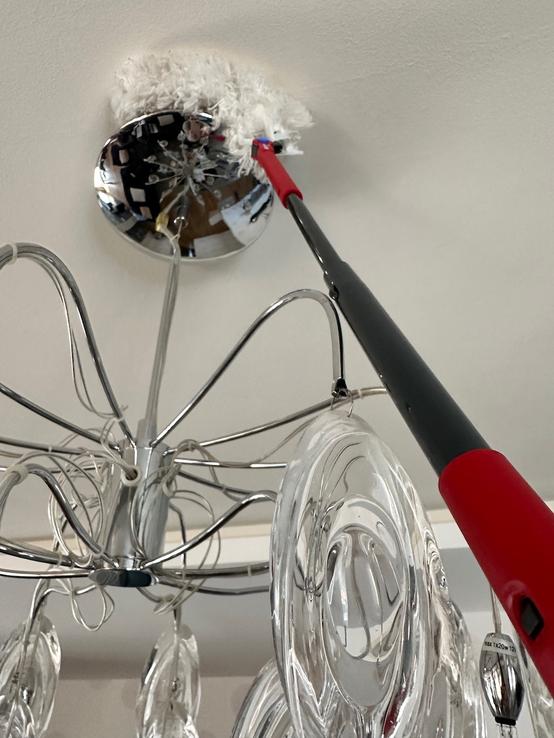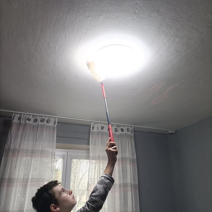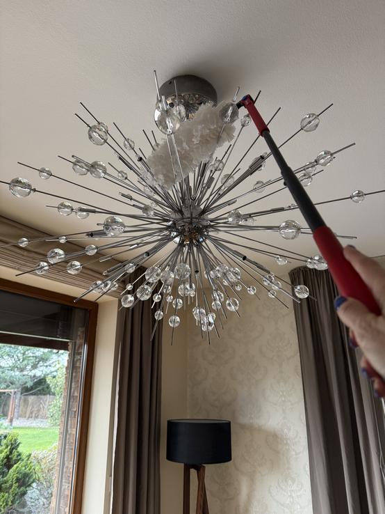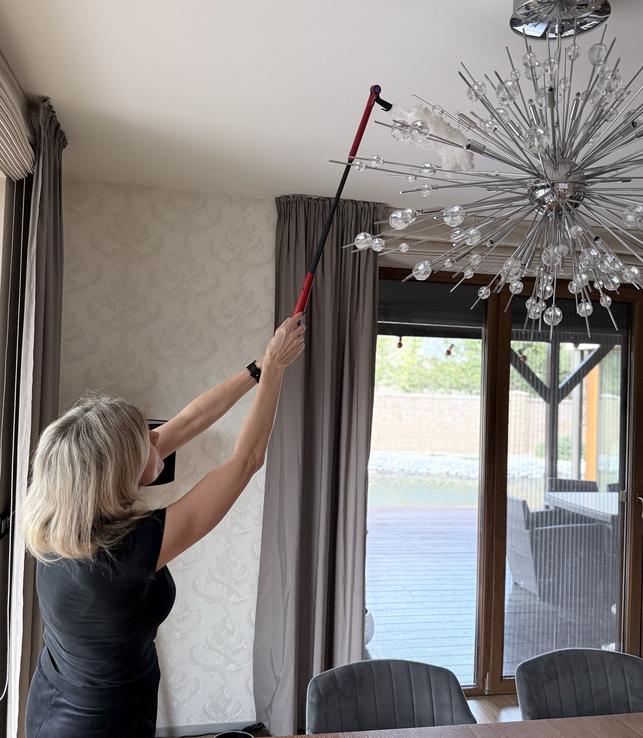 Najväčšie plus je teleskopická rukoväť a ohybná hlavica – dostanem sa úplne všade bez námahy. Vrch skríň, lustre, rohy pri strope či miesta pod nábytkom už nie sú žiadny problém. Nemusím nič presúvať ani liezť na stoličku, čo je obrovská úspora času aj energie.
