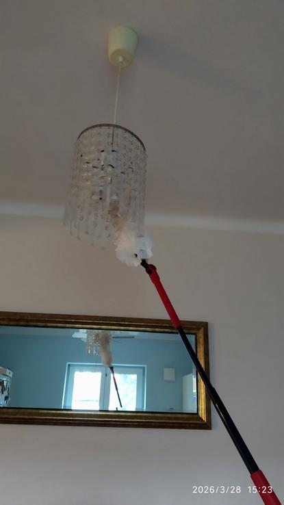Pri tejto Vileda prachovke je tento problém vyriešený, "chlpatý" nástavec sa nevyťahuje, dá sa zafixovať, je ohybný, nemusíte mať obavu, že niečo poškodíte...Ja som s ním poutierala komplet svietidlá, kde som sa doteraz nedostala a naozaj výsledok super! Mám čisto!!!