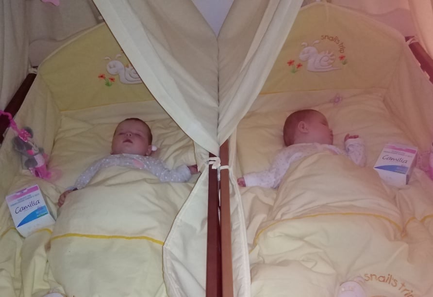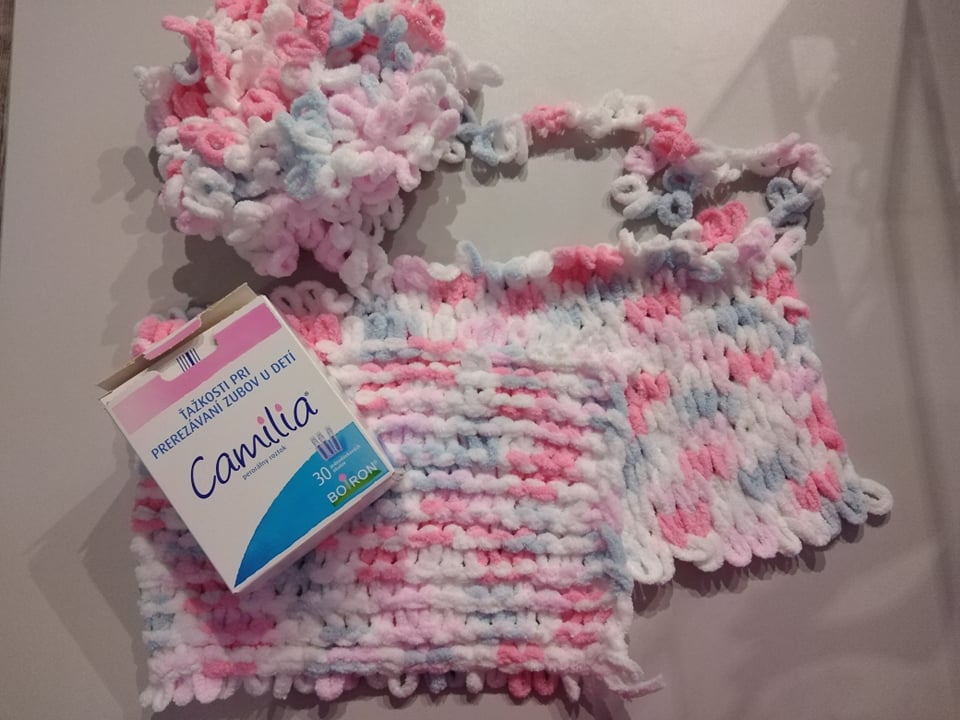 Hneď prvý večer testovania som použila pre obe po jednej ampulke. Musím povedať, že efekt sa dostavil po niekoľkých minútach. Dámy zaspali samy, bez revu, a spali do rána. Na druhý deň sme to skúsili aj počas dňa, celkovo boli deti spokojnejšie, znova dokázali ležať a hrať sa v postieľke. Tretí a štvrtý deň prebiehal rovnako, jediným efektom boli pokojnejšie deti. No na piaty deň som si všimla, že nám klesla spotreba premočených podbradníkov a slintáčikov presne o jeden kus. Šarlote pomohla Camilia znížiť tvorbu slín po takmer 5 dňoch, u Margaréty sa tento efekt dostavil o deň neskôr, na šiesty deň. A s postupom času a pravidelným používaním sa znížila aj potreba dávať všetko do úst, dokonca zistili, že hrkálky aj hrkajú, ak sa nesnažia ich zjesť. Mne sa podarilo uchmatnúť si zopár pokojných večerov, keďže som nemusela hodiny uspávať bolesťou zničené a nervózne deti a začala som pliesť deky. Po dlhšom používaní sa znížila frekvencia opakovania jednotlivých dávok, aj keď zuby stále nevyšli, no je to otázkou pár dní, keďže im už veľa nechýba.