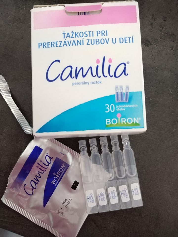 Camilia je prírodný prípravok, ktorý pomáha pri prerezávaní zúbkov. Sú to malé ampulky a bábätku sa dáva 1 ampulka cca každých 6 hodín.