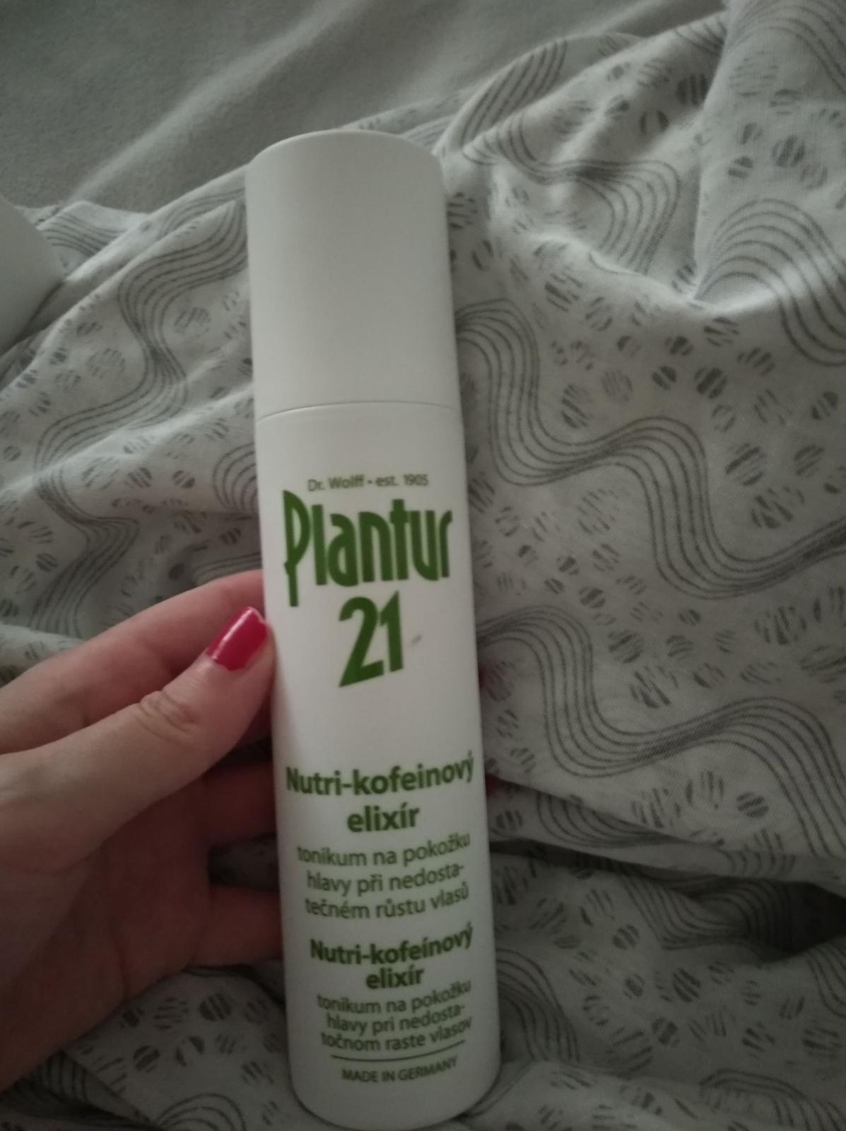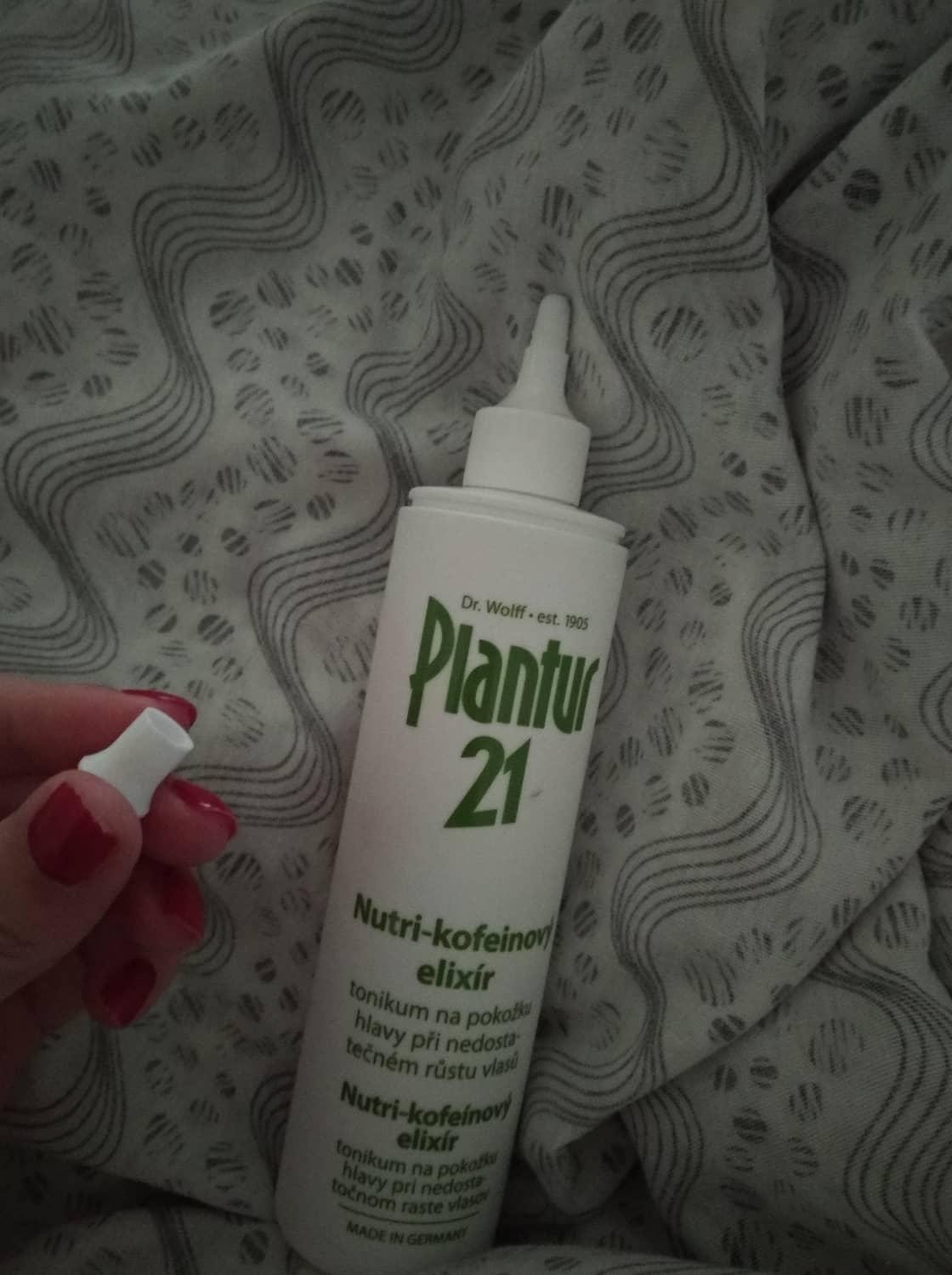 Plantur 21 Nutri-kofeínový elixír, 200 ml - tonikum, ktoré slúži ako intenzívna ochrana pred predčasným vypadávaním vlasov. Tento elixír bol špeciálne vyvinutý pre mladé ženy a zaisťuje ochranu pred vyčerpaním energie vo vlasových korienkoch a tým zabraňuje predčasným poruchám rastu vlasov. Elixír by sa mal aplikovať denne a bez oplachovania. Medzi účinné látky tohto malého zázraku patria kofeín, ktorý aktivuje korienky a zlepšuje rast vlasov, biotín, ktorý reguluje rovnováhu energie vo vlasových korienkoch, zinok ako rastový faktor, ďalej vápnik a horčík.