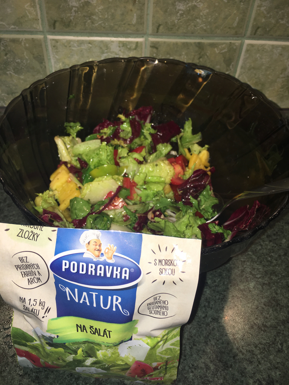 Zmes "na šalát" je príjemnej chuti, ale pozor je dosť slaná. Takže sypať treba veľmi opatrne.